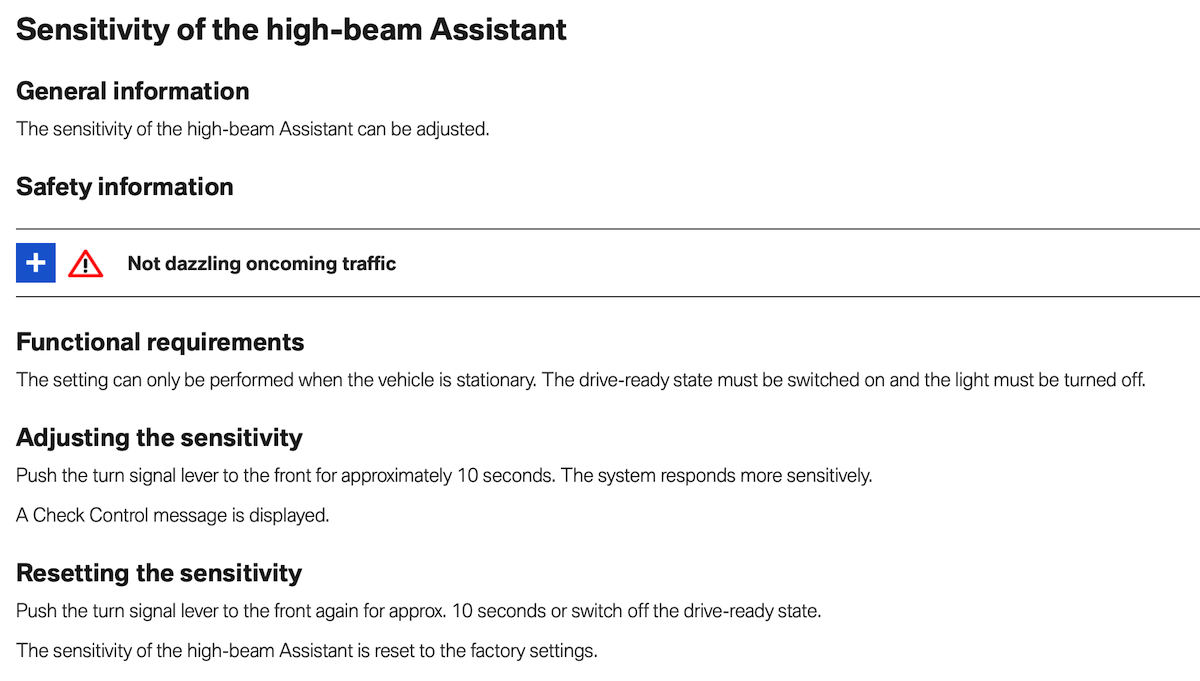 There’s something in the owner’s manual about changing the sensitivity on the high beam assist. I have yet to figure it out. Something about holding the stalk forward for 10 seconds, but I haven’t seen a message pop up. Any suggestions? Might help OP.